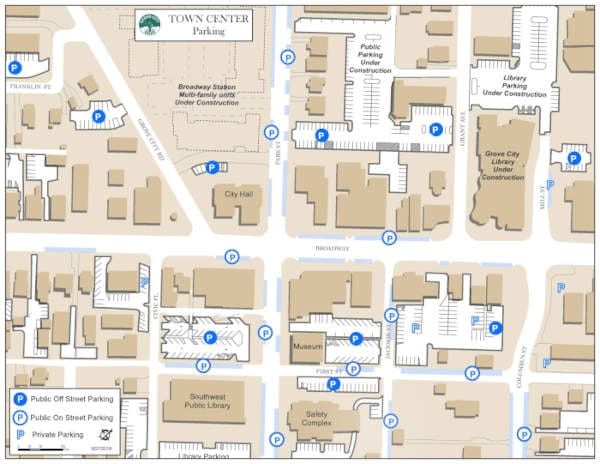 - Parking is available throughout the town center and surrounding neighborhoods.