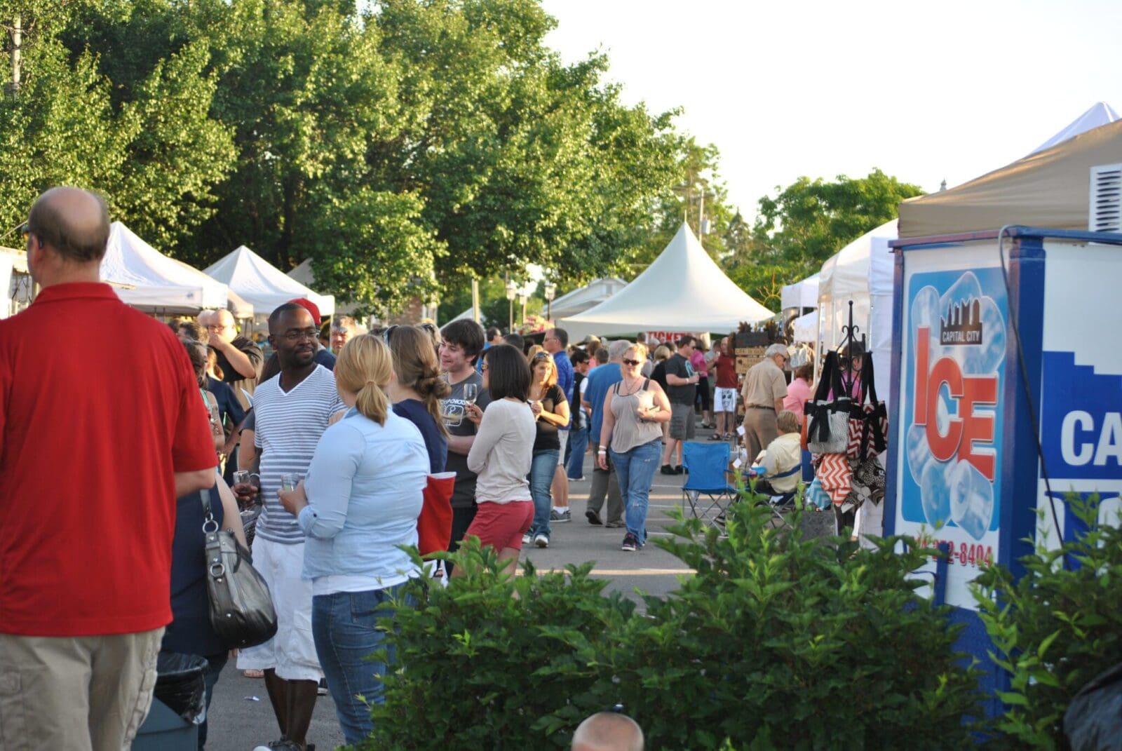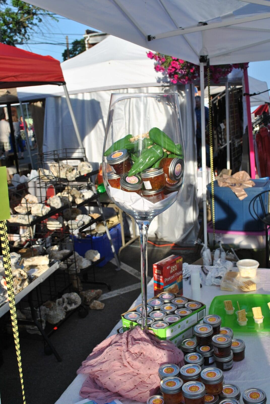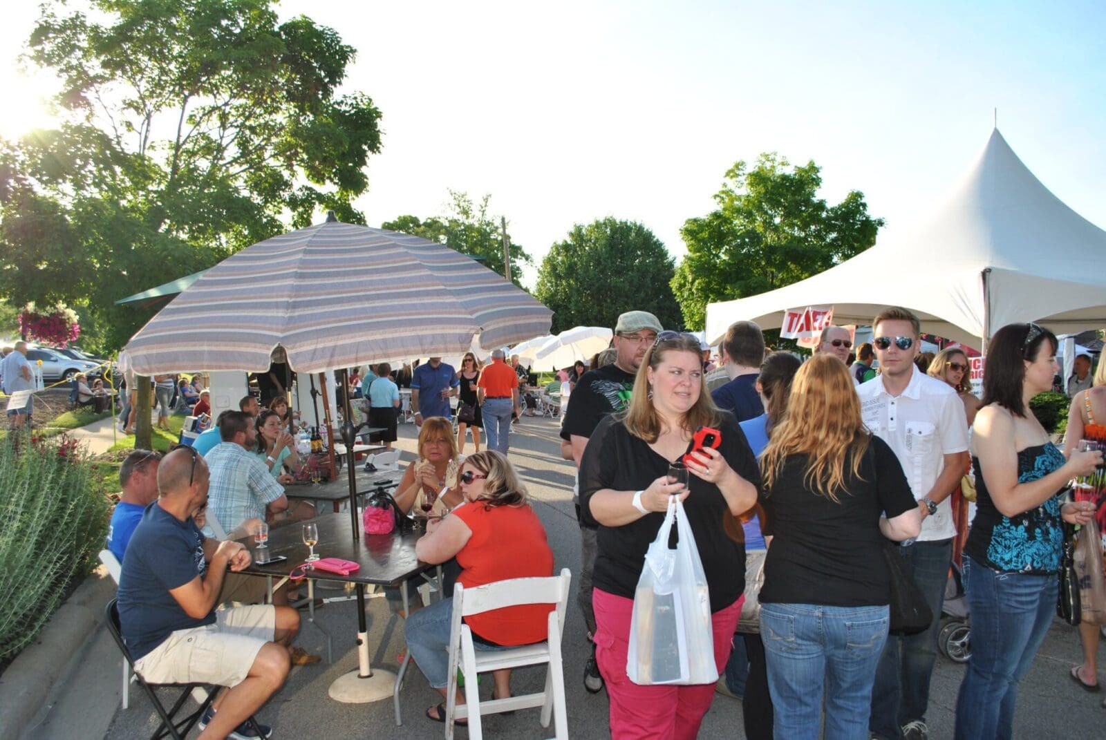Take a break from shopping to refill your wine glass and grab small plates from a variety of food artisans, food trucks and dessert vendors.